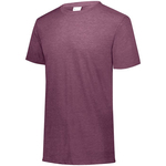 3.8 ounce, 50% polyester/38% cotton/12% rayon tri-blend knit * Tear away label * Crew neck * Set-in sleeves with rolled forward shoulder seam